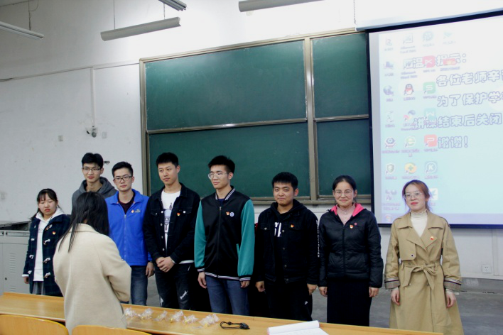 最后,張陽老師為每位黨員頒發(fā)了一枚代表著黨員身份的“為人民服務(wù)”徽章,她希望大家能夠以此來約束自己,在以后的學(xué)習(xí)生活中積極發(fā)揮先鋒模范作用。