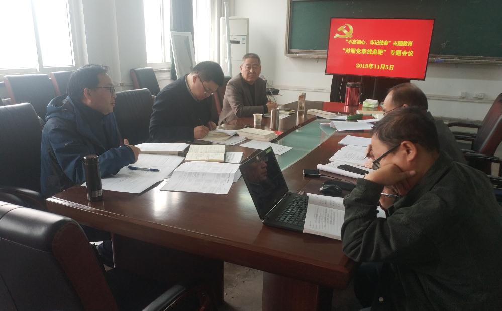 按照學(xué)?!安煌跣?、牢記使命”主題教育領(lǐng)導(dǎo)小組《關(guān)于在“不忘初心、牢記使命”主題教育中做好對照黨章黨規(guī)找差距的通知》的要求,學(xué)院召開“對照黨章找差距”專題會議,黨總支書記李淵、副院長張海濤、副院長肖發(fā)榮三位處級領(lǐng)導(dǎo)干部逐條對照黨章、《準(zhǔn)測》、《條例》和《中國共產(chǎn)黨工作機關(guān)條例(試行)》等內(nèi)容,認(rèn)真查擺存在問題。