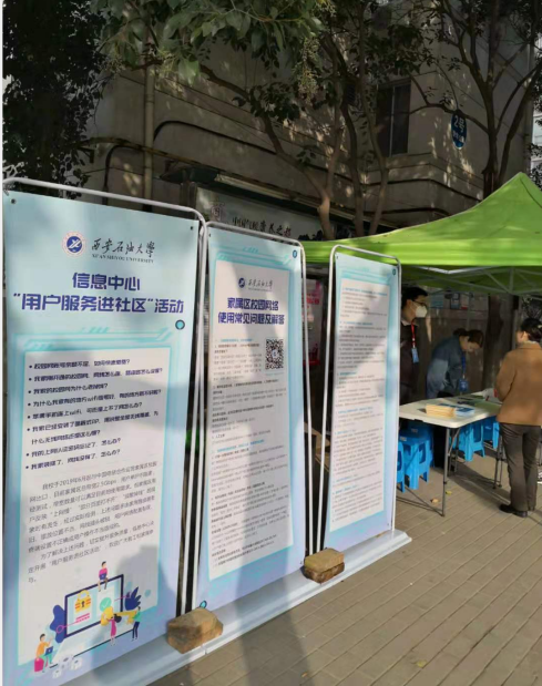 本次活動(dòng)分別在北院2號(hào)青年公寓東側(cè)和南院音樂(lè)系樓東側(cè)設(shè)立“服務(wù)站”,通過(guò)設(shè)立網(wǎng)絡(luò)知識(shí)宣傳展板,發(fā)放宣傳彩頁(yè)等方式向教職工和家屬普及網(wǎng)絡(luò)安全知識(shí)和校園網(wǎng)使用方法,針對(duì)用戶反饋的問(wèn)題現(xiàn)場(chǎng)逐一解答,根據(jù)用戶需求,黨員和技術(shù)骨干深入教職工家里進(jìn)行上門(mén)服務(wù)。
