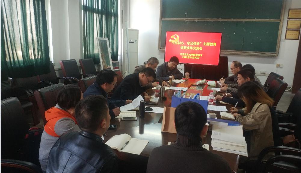 10月30日上午在雁塔校區(qū)第一教學(xué)樓818會議室,馬克思主義學(xué)院舉行了“不忘初心、牢記使命”主題教育調(diào)研成果交流會暨主題教育開展情況匯報會。學(xué)校主題教育督導(dǎo)組耿嶺、喬曉到會指導(dǎo),學(xué)院黨政領(lǐng)導(dǎo)班子、中心組成員、黨支部書記、教研室主任參加會議,會議由黨總支書記李淵主持。