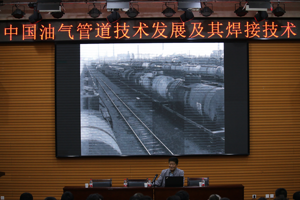 報(bào)告會(huì)上“石油一輩子,焊接一輩子?!毖φ窨淌谑紫扔靡痪湓捀爬怂c焊接的不解之緣。薛教授幽默風(fēng)趣地與師生們分享了自己與管道事業(yè)的精彩故事,介紹了國(guó)內(nèi)外管道建設(shè)的歷史與現(xiàn)狀,提出了焊接接頭高強(qiáng)匹配、焊接熱影響區(qū)開裂及軟化、焊接缺陷容限等是管道焊接需要解決的關(guān)鍵技術(shù)問題,暢談了未來中國(guó)管道技術(shù)的發(fā)展趨勢(shì),著重講解了高效焊接技術(shù)在油氣管道中的應(yīng)用。