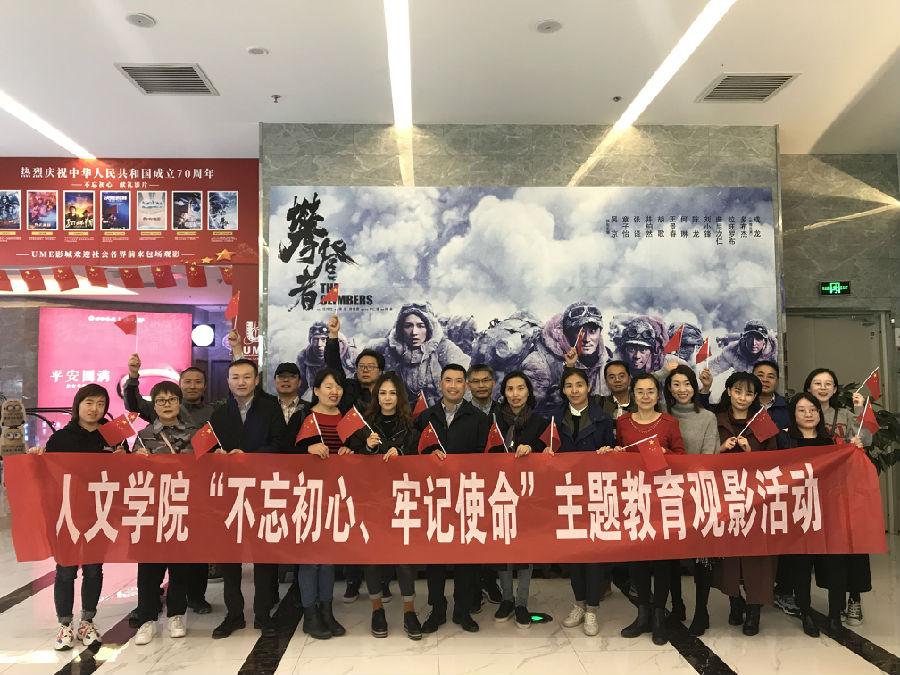 為進一步推動全體黨員更加自覺地為實現(xiàn)新時代黨的歷史使命不懈奮斗,激發(fā)全體教職工的愛國情懷,不忘初心、牢記使命,10月14至15日間,人文學院開展“不忘初心、牢記使命”主題觀影活動,組織全體教職工觀看了《中國機長》、《攀登者》兩部影片。