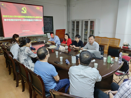 10月1日上午,外國語學院黨委理論學習中心組在雁塔校區(qū)1號主樓701會議室集中收看慶祝中華人民共和國成立70周年大會并召開了教師座談會。學院黨政領(lǐng)導班子、理論中心組成員、教工黨支部書記(副書記)及各系部主任(副主任)參加了會議,會議由學院黨委書記蔡強主持。