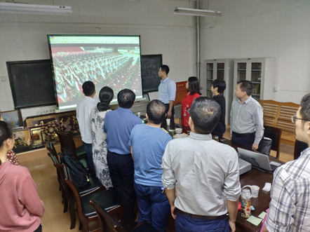 首先大家集中觀看了慶祝中華人民共和國70周年大會,認真聆聽了習近平總書記在慶祝中華人民共和國70周年慶祝大會上的重要講話,懷著激動興奮的心情觀看了閱兵式和群眾游行活動。在集體觀看學習結(jié)束后,隨即召開了教師座談會。會上,所有參會教師就自己對新中國發(fā)展歷史、國家的偉大發(fā)展成就等進行了激情洋溢的發(fā)言,展開了熱烈的交流討論,發(fā)表了自己的感想看法。