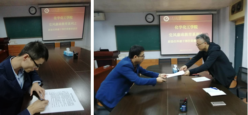 四是開展新提任科級領(lǐng)導(dǎo)干部廉潔談話教育。為進一步提高新提任科級干部對黨風(fēng)廉政建設(shè)重要性認識,增強廉潔勤政意識,2019年9月25日上午,學(xué)院黨委對新提任的2名科級干部進行了廉政談話教育。學(xué)院黨委書記司馬文龍從三個方面提出了具體要求,一是信念過硬,提高思想境界,永葆本色;二是政治過硬,加強學(xué)習(xí),踏實做事;三是作風(fēng)過硬,廉潔自律,以身作則。學(xué)院2位新任科級干部從依法行政、秉公用權(quán)、廉潔自律角度逐一交流了認識和決心,并簽訂了“廉潔自律承諾書”。此次談話教育,進一步明示了科級干部履職需遵照執(zhí)行的黨規(guī)黨紀(jì)要求等剛性約束,又體現(xiàn)了組織對確保新提任人員履好職、起好步的關(guān)懷溫度,進一步強化了新提任科級領(lǐng)導(dǎo)干部的依法行政意識和廉潔從政意識。