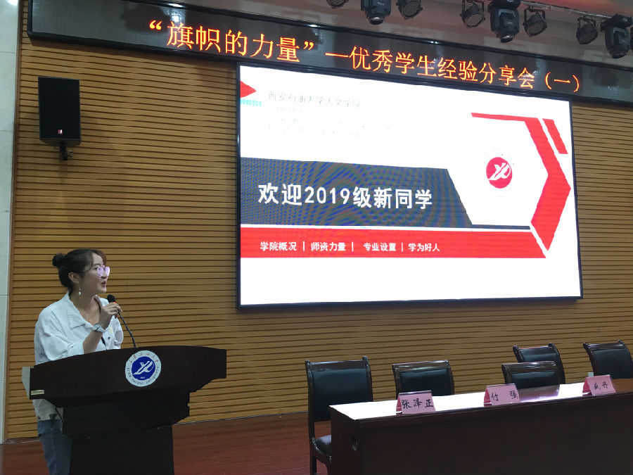 為激勵2019級新生勤奮學(xué)習(xí)、努力進取、在德、智、體、美等方面全面發(fā)展,9月20日下午,人文學(xué)院2019級全體新生參加入學(xué)教育之學(xué)習(xí)經(jīng)驗交流會,會議在人文經(jīng)管樓118室召開。本次交流會的主題是“旗幟的力量”,會議邀請了我院2017級優(yōu)秀學(xué)生代表史鹿鳴同學(xué)分享個人學(xué)習(xí)經(jīng)驗,為新生樹立學(xué)習(xí)目標(biāo)。