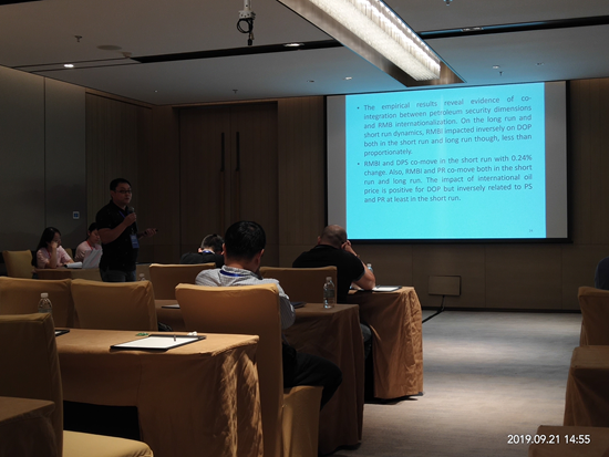 9月21日,陳丁博士在“能源供應(yīng)與能源安全”分論壇宣讀題為“Does Renminbi Internationalization Matter for Petroleum Security in China?-Evidence from A Disaggregate Analysis”的學(xué)術(shù)論文,并與多位專(zhuān)家進(jìn)行現(xiàn)場(chǎng)討論。