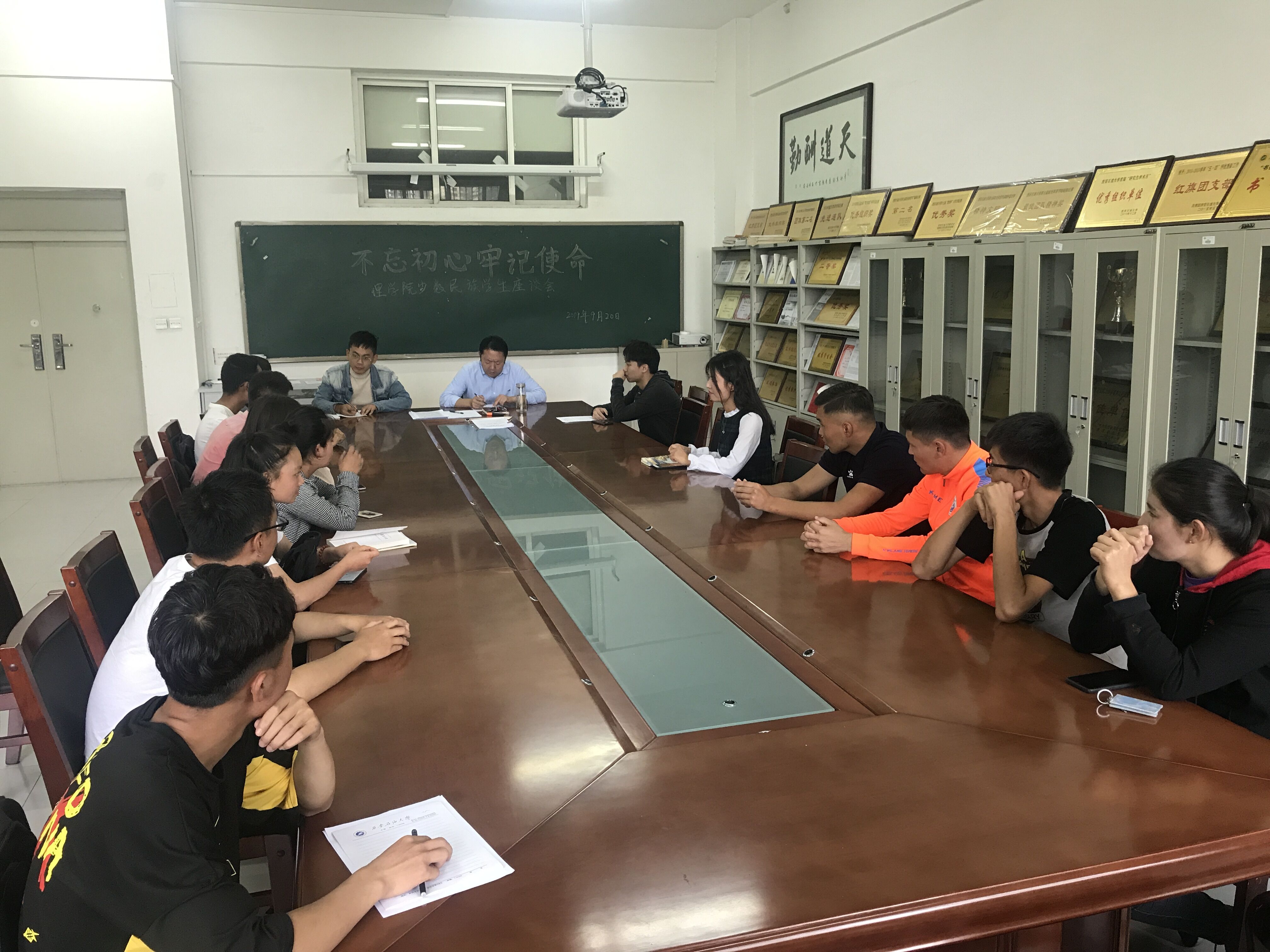 為進(jìn)一步了解少數(shù)民族學(xué)生學(xué)習(xí)生活近況,傾聽學(xué)子心聲,加強(qiáng)學(xué)業(yè)輔導(dǎo)和成才引導(dǎo), 9月20日下午,理學(xué)院在鄠邑校區(qū)管道樓111會(huì)議室召開少數(shù)民族學(xué)生座談會(huì)。黨委副書記馬小剛出席,2019級(jí)輔導(dǎo)員康偉主持,全體少數(shù)民族學(xué)生參加。