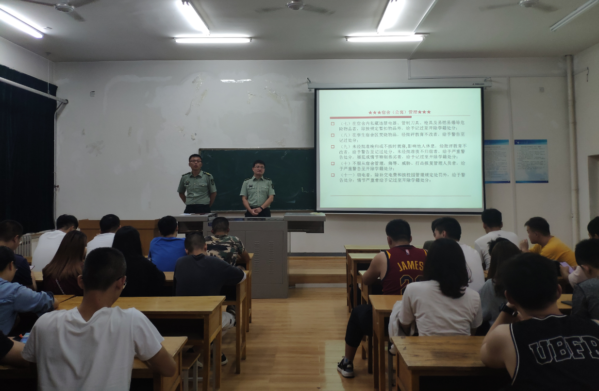 其次,周老師著重從以下幾點(diǎn)對(duì)參會(huì)學(xué)生干部進(jìn)行了教育培訓(xùn):一、垂范遵守法律法規(guī)和校紀(jì)校規(guī),自覺(jué)維護(hù)國(guó)家安全與社會(huì)和諧;二、關(guān)注身心健康,加強(qiáng)體育鍛煉,健康愉悅過(guò)好大學(xué)生活;三、牢記使命、恪守職責(zé),增強(qiáng)工作主動(dòng)性和敏感性,深入細(xì)致關(guān)注關(guān)懷同學(xué)們的心理健康,安全隱患、異常情況要及時(shí)向輔導(dǎo)員老師反映;四、牢記校級(jí)校規(guī),杜絕宿舍私藏管制刀具、違禁藥品、違禁電器等情況;五、注重宿舍內(nèi)務(wù)及食品安全,從根源上做好地方疾病及傳染性疾病的預(yù)防工作;六、增強(qiáng)國(guó)家安全及網(wǎng)絡(luò)安全意識(shí),自覺(jué)做到不造謠、不信謠、不傳謠,維護(hù)社會(huì)和諧穩(wěn)定。