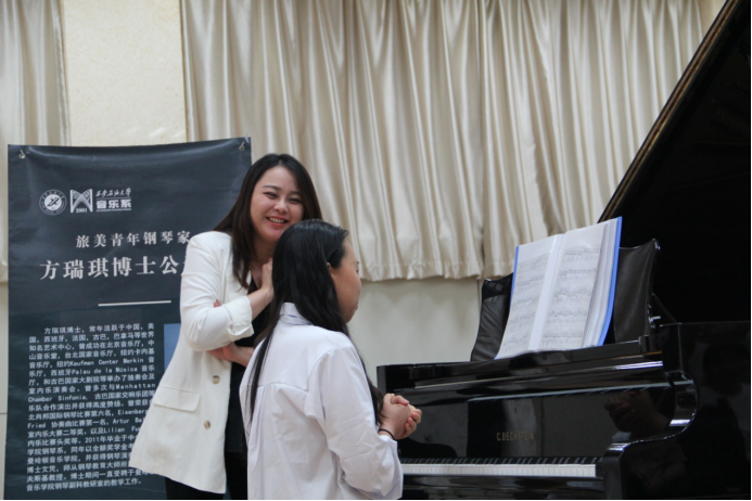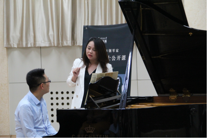 2019年6月25日旅美青年鋼琴家方瑞琪博士應(yīng)我校國際交流與合作處、音樂系邀請,在雁塔校區(qū)第三會議室舉行鋼琴公開課。方瑞琪博士從介紹作曲家肖邦生平、創(chuàng)作背景、作品風(fēng)格等方面進(jìn)行了詳細(xì)的闡述,對我系老師和學(xué)生的演奏進(jìn)行精心的指導(dǎo)與點評。