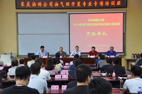 為適應(yīng)長(zhǎng)慶油田公司“二次加快發(fā)展”形勢(shì),實(shí)現(xiàn)保持持續(xù)高產(chǎn)穩(wěn)產(chǎn)的目標(biāo),為公司培養(yǎng)一支高素質(zhì)的專業(yè)技術(shù)人才隊(duì)伍,按照公司2019年重點(diǎn)工作要求,“長(zhǎng)慶油田公司油氣田開發(fā)技術(shù)崗位能力培訓(xùn)班”于6月24日上午在我校培訓(xùn)中心順利舉辦。長(zhǎng)慶油田公司人事處(黨委組織部)副處長(zhǎng)(副部長(zhǎng))李俊杰,我校繼續(xù)教育學(xué)院黨總支書記耿嶺、院長(zhǎng)談建勤、副院長(zhǎng)吳民生以及來(lái)自油田公司十二個(gè)采油廠和長(zhǎng)實(shí)集團(tuán)等二級(jí)單位的54名在崗技術(shù)員工參加了開班儀式,儀式由長(zhǎng)慶油田公司人事處(黨委組織部)培訓(xùn)管理科科長(zhǎng)崔建華主持。
