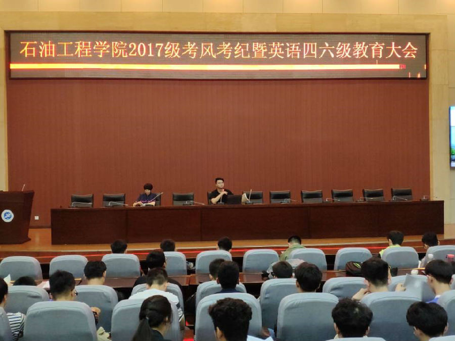 為嚴肅期末考風考紀,進一步提高四六級重視度。6月5日中午13點30分,石油工程學院在我校鄠邑校區(qū)弘石報告廳召開“石油工程學院2017級考風考紀暨英語四六級教育大會”。2017級輔導員孫浩哲老師、張楠老師及2017級370余名同學參加本次大會。