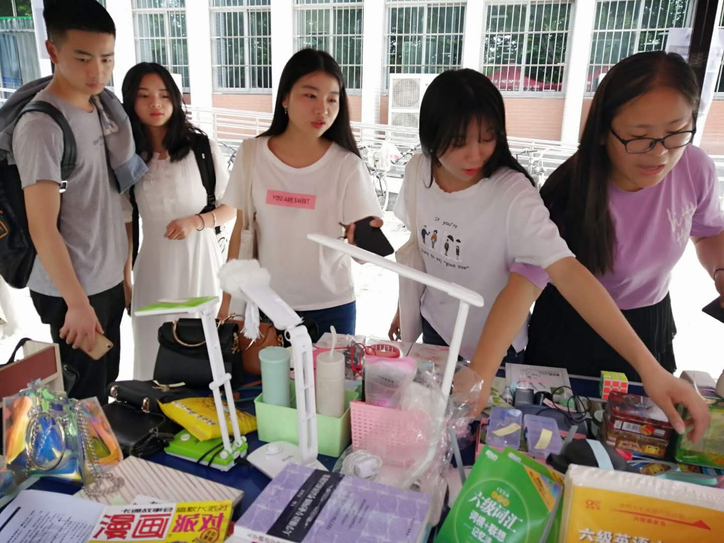 6月6日上午8:00,由外國語學院團委學生會主辦,學院生活安全部承辦的“盛夏方程式”跳蚤市場活動在鄠邑校區(qū)東區(qū)食堂前順利開展。