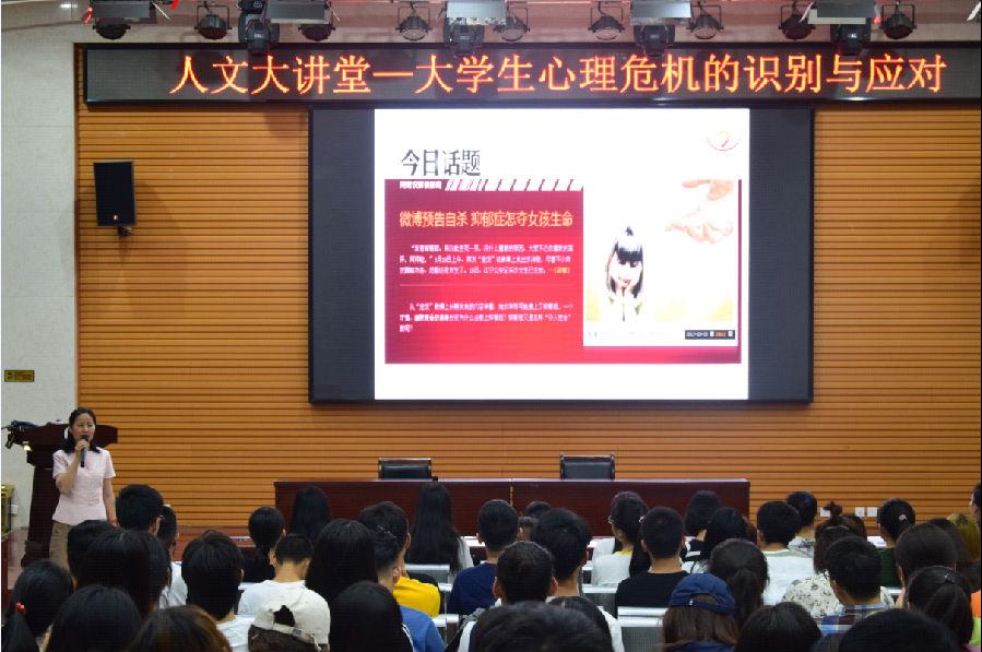 本次講座由人文院黨委副書記盛丹老師主持,相關(guān)教師以及我院中文、新聞、設(shè)計(jì)專業(yè)16級(jí)、17級(jí)、18級(jí)學(xué)生300余人聽取了講座。在講座中,肖瓊老師首先為我們解釋了大學(xué)生心理危機(jī)的概念,運(yùn)用專業(yè)術(shù)語詳細(xì)介紹了危機(jī)分類、產(chǎn)生原因等,使同學(xué)們對(duì)心理危機(jī)有一個(gè)初步的了解。接著,老師對(duì)怎樣識(shí)別心理危機(jī)、怎么應(yīng)對(duì)心理危機(jī)這兩方面進(jìn)行深入講解,講解期間列舉實(shí)例,提出多種觀點(diǎn)。肖老師多次強(qiáng)調(diào)我們應(yīng)關(guān)心周圍同學(xué),善于發(fā)現(xiàn),從而起到預(yù)防作用。這次講座為同學(xué)們面對(duì)心理危機(jī)提供了有效措施,使我們受益匪淺,有利于今后的學(xué)習(xí)生活。