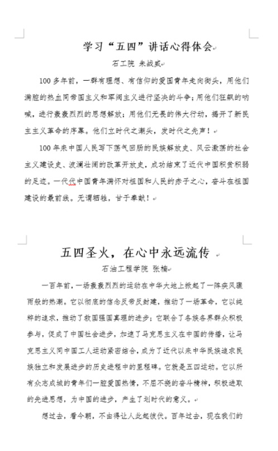 為紀(jì)念五四運(yùn)動100周年,深入學(xué)習(xí)貫徹習(xí)近平總書記在紀(jì)念五四運(yùn)動100周年大會上的重要講話精神,引導(dǎo)高校青年大學(xué)生加深對五四運(yùn)動歷史意義和時代價值的認(rèn)識,石油工程學(xué)院于5月份開展學(xué)習(xí)習(xí)近平總書記在紀(jì)念五四運(yùn)動100周年大會上講話精神系列活動。