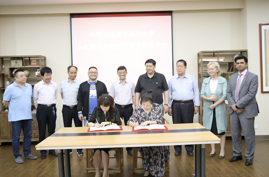 2019年5月27日,西安石油大學(xué)經(jīng)濟(jì)管理學(xué)院院長王君萍、財(cái)務(wù)處副處長聶朝恩及教師陳丁前往西安博愛國際學(xué)校,就共建優(yōu)秀生源基地等事宜與王國平董事長、南國慶監(jiān)事長、陳紅校長、國際部Nancy主任進(jìn)行座談并達(dá)成共識,雙方簽約共建“優(yōu)秀生源基地”,并舉行授牌儀式。