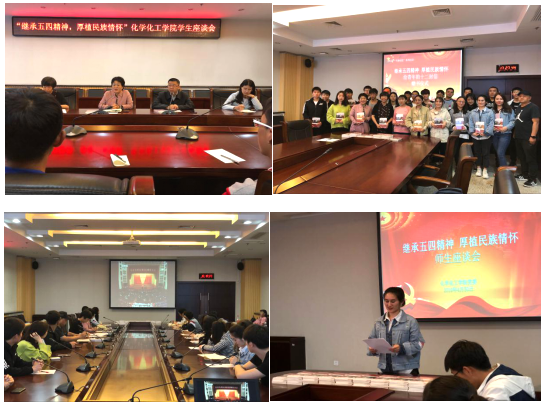 在黨委學(xué)生工作部的指導(dǎo)下,學(xué)院在鄠邑校區(qū)會(huì)議中心第二會(huì)議室召開了“繼承五四精神,厚植民族情懷”師生座談會(huì)。校黨委學(xué)生工作部民族生教育管理辦公室金葵、曾衛(wèi)軍,校黨委保衛(wèi)部政??品犊※i,化學(xué)化工學(xué)院黨委副書記高黎、學(xué)院各年級輔導(dǎo)員及學(xué)院黨團(tuán)員骨干代表、學(xué)生干部代表、大學(xué)生參軍退役士兵代表、少數(shù)民族學(xué)生代表等35人參加座談。會(huì)議集體學(xué)習(xí)了習(xí)近平總書記關(guān)于紀(jì)念五四運(yùn)動(dòng)的講話精神,介紹了學(xué)院近年教育管理服務(wù)工作方面取得的成績,結(jié)合五四精神對大學(xué)生提出了要求和希望,與會(huì)學(xué)生代表祖力皮亞面向全院學(xué)生發(fā)出倡議,希望大家都能繼承和弘揚(yáng)五四精神,努力爭做新時(shí)代社會(huì)主義合格建設(shè)者和可靠接班人。會(huì)議圍繞“繼承五四精神,厚植民族情懷”主題作了交流研討。恰逢學(xué)院“書香校園”建設(shè)活動(dòng)開展之際,學(xué)院黨委向與會(huì)師生贈(zèng)閱了北大教授朱光潛的著作《給青年的十二封信》,勉勵(lì)大家用實(shí)際行動(dòng)讓五四精神在新時(shí)代放射出新的光芒。