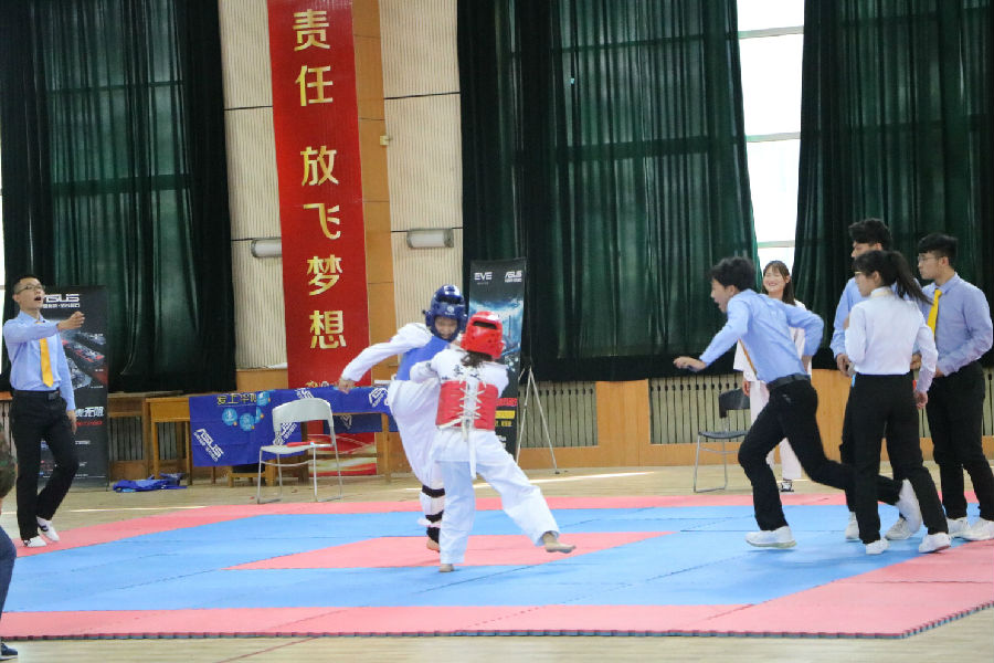 為進(jìn)一步提高我校學(xué)生身體素質(zhì),豐富校園文化生活,加強(qiáng)高校間協(xié)會(huì)的合作與交流。我校跆拳道協(xié)會(huì)于2019年5月11日在西安理工大學(xué)曲江校區(qū)學(xué)生活動(dòng)中心參加了“西安理工大學(xué)第二屆跆拳道高校邀請(qǐng)賽“。在我校校團(tuán)委、(學(xué)生)社團(tuán)聯(lián)合會(huì)、石工院團(tuán)委學(xué)生會(huì)和協(xié)會(huì)指導(dǎo)老師、石工院2017級(jí)輔導(dǎo)員孫浩哲老師的指導(dǎo)下,我校跆拳道協(xié)會(huì)組成由協(xié)會(huì)會(huì)長(zhǎng)張?jiān)酵瑢W(xué)擔(dān)任領(lǐng)隊(duì),卓秀意、張錦航和王智鵬等15名同學(xué)為隊(duì)員的代表隊(duì)參加比賽。