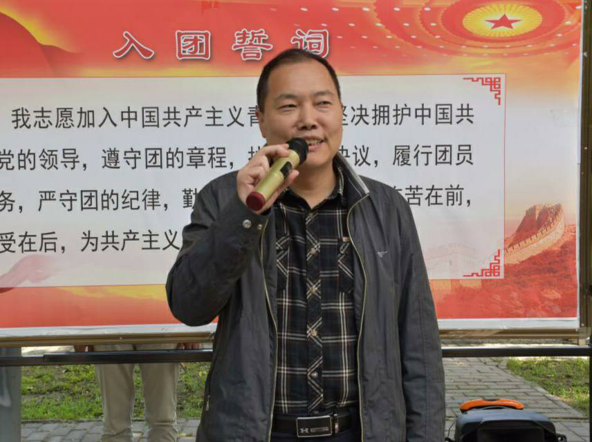 面對(duì)鮮艷的共青團(tuán)旗,在團(tuán)員代表的帶領(lǐng)下,大家舉起右手,面對(duì)團(tuán)旗,新團(tuán)員宣誓、老團(tuán)員重溫了入團(tuán)誓詞。