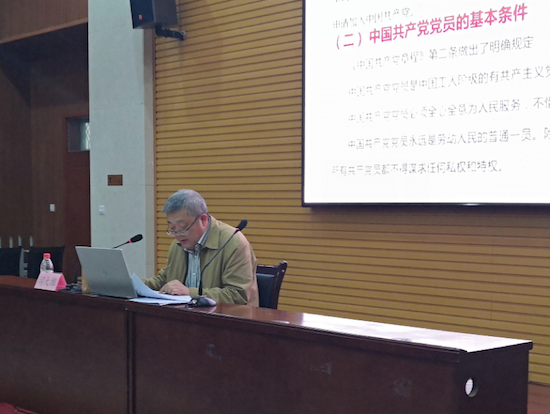 典禮結(jié)束后,閆書記以“明確共產(chǎn)黨員條件,確立遠大政治追求”為題,為學員們講授黨課第一講。他從“當代大學生為什么要入黨”展開,詳細闡述了共產(chǎn)黨員的條件、權(quán)利與義務(wù),以及入黨程序等方面內(nèi)容。他希望學員們能夠確立政治上的遠大追求,樹立崇高信念,加強自身修養(yǎng),自愿接受黨組織的考驗,早日實現(xiàn)自己的人生目標和理想。