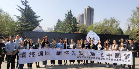 4月5日上午,經濟管理學院 “慎終追遠,緬懷先烈,放飛中國夢”主題黨日活動在愛國主義教育基地西安烈士陵園開展。學院組織員武威老師、學生黨員代表共20余人參加。