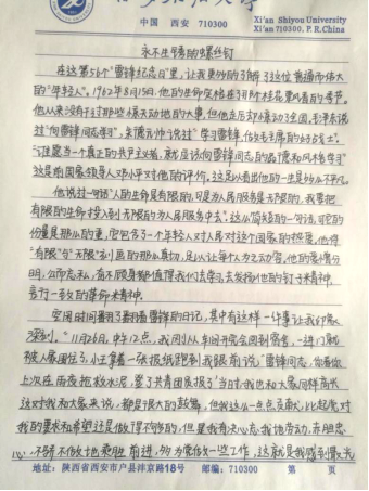 自3月5日以來(lái),化學(xué)化工學(xué)院開(kāi)展了“學(xué)習(xí)雷鋒做美德少年”的征文活動(dòng),26個(gè)團(tuán)支部58名同學(xué)參加征文比賽,其中化工1704班的陳玉坤同學(xué)在文章中這樣寫(xiě)到:學(xué)會(huì)體諒別人,學(xué)會(huì)勞動(dòng)快樂(lè),學(xué)會(huì)無(wú)私奉獻(xiàn)。生活中有許多小事需要我們?nèi)プ?。有可能去做的不是他,不是她,而是我們?/p>