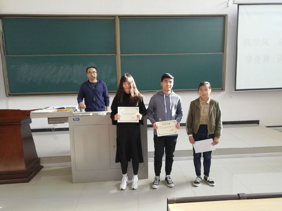 首先,李化杰老師針對(duì)2018-2019學(xué)年第一學(xué)期期末成績(jī)做了詳細(xì)分析,并進(jìn)行了橫向和縱向的對(duì)比,指出了當(dāng)前2018級(jí)學(xué)風(fēng)建設(shè)中取得的成績(jī)和存在的不足。之后,李老師對(duì)上學(xué)期在社會(huì)實(shí)踐、書香校園、課程學(xué)習(xí)等方面表現(xiàn)突出的學(xué)生進(jìn)行了表彰,他宣讀了《關(guān)于表彰2019年寒假社會(huì)實(shí)踐活動(dòng)先進(jìn)個(gè)人的決定》、《關(guān)于表彰2019年寒假“誦讀經(jīng)典,征文比賽”活動(dòng)先進(jìn)個(gè)人的決定》《關(guān)于授予唐子怡等三位同學(xué)專業(yè)“學(xué)霸”稱號(hào)的決定》,并給頒發(fā)了證書,希望全體學(xué)生以先進(jìn)為榜樣,見賢思齊,努力學(xué)習(xí),積極實(shí)踐。