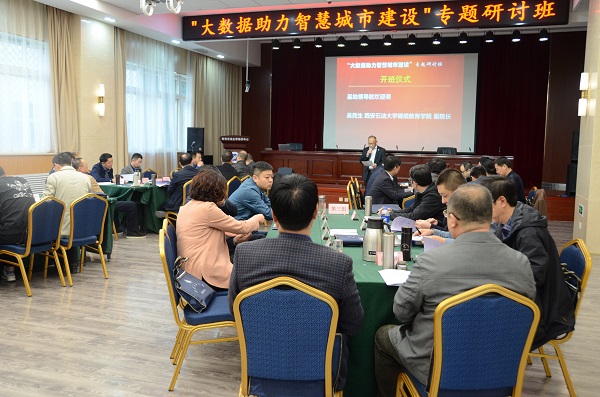 3月18日至28日,我校培訓中心成功舉辦了 2019年春季陜西省干部教育培訓“大數(shù)據(jù)助力智慧城市建設(shè)”專題研討班。開班儀式上,繼續(xù)教育學院吳民生副院長對參加本次培訓的來自省直機關(guān)單位、省屬企業(yè)、高校及地市政府相關(guān)部門的39位處級領(lǐng)導干部學員表示熱烈歡迎,并簡要介紹了西安石油大學基地的發(fā)展歷程和我基地培訓工作開展情況及取得的成績。