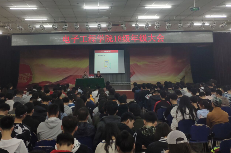 3月27日晚19點(diǎn)30分,電子工程學(xué)院2018級(jí)年級(jí)大會(huì)在鄠邑校區(qū)騰輝大學(xué)生活動(dòng)中心舉行,會(huì)議由電子工程學(xué)院2018級(jí)輔導(dǎo)員錢宇航主持,全體2018級(jí)470余名學(xué)生參加了本次大會(huì)。