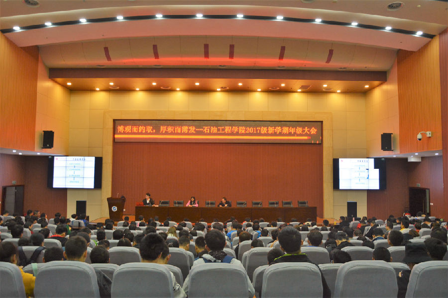 為進一步總結學習情況,樹立正確目標,3月13日下午4點,石油工程學院2017級“博觀而約取,厚積而薄發(fā)”主題年級大會于我校鄠邑校區(qū)弘石學術報告廳召開,石油工程學院黨委副書記張建高、2017級輔導員張楠、孫浩哲和全體2017級學生共370余人參加,會議由孫浩哲老師主持。
