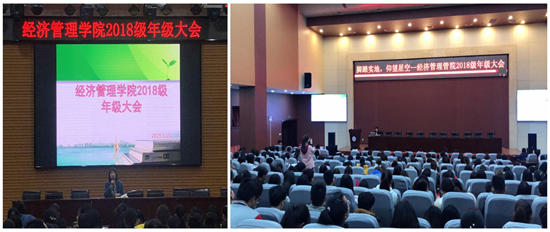 新學(xué)期,新氣象,經(jīng)濟(jì)管理學(xué)院于3月13日12點(diǎn)30分別在鄠邑校區(qū)弘石報告廳和就業(yè)指導(dǎo)中心118召開2018級年級大會。會議分別由2018級學(xué)生輔導(dǎo)員尹曉嬌、陸曉寒老師主持,2018級全體同學(xué)參加了會議。