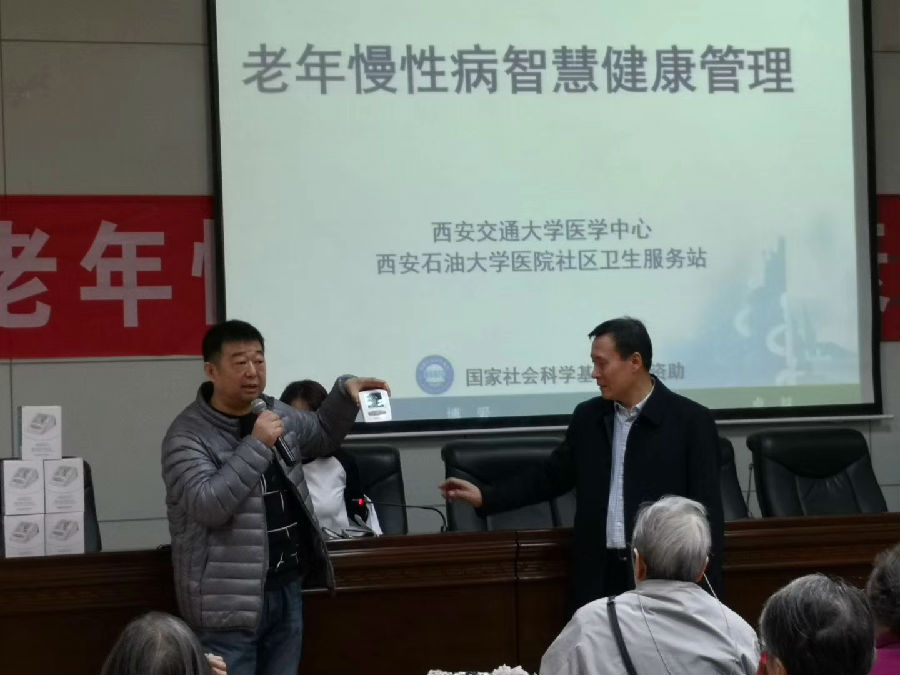 講座結束后,西安交通大學醫(yī)學中心的工作人員現(xiàn)場對高血壓智慧健康管理項目進行了詳細介紹,通過在醫(yī)院社區(qū)衛(wèi)生服務站建立電子檔案并檢測血壓波動,享受交大一附院專家遠程診療及轉(zhuǎn)診,方便離退休職工對高血壓的監(jiān)測,提高自我管理能力和生活質(zhì)量,這也是校醫(yī)院社區(qū)居民慢病管理的新的舉措。