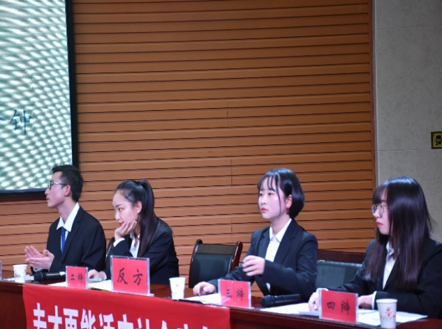 本場比賽的參賽正方的辯題是“全才更能適應(yīng)社會的競爭”,正方選手分別為一辯郭曉雨,二辯張文雪,三辯馬忠俊,四辯張乃文;反方的辯題是“專才更能適應(yīng)社會競爭”,反方選手分別為一辯牛澄洲,二辯崔美淇,三辯李雯,四辯任鉑。在主持人詳細(xì)介紹了比賽規(guī)則并宣布開始后,正反雙方便展開了激烈的辯論。