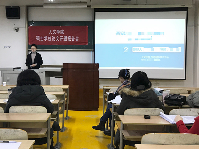 根據(jù)研究生院的工作進(jìn)度安排,人文學(xué)院于12月7日開展了2017級漢語國際教育專業(yè)碩士論文開題論證答辯工作。25名2017級研究生分為兩組分別在本部二號教學(xué)樓1007、1011教室進(jìn)行了匯報(bào),10名碩導(dǎo)及2名答辯秘書參與了答辯論證工作,2018級全體研究生旁聽了本次答辯會。