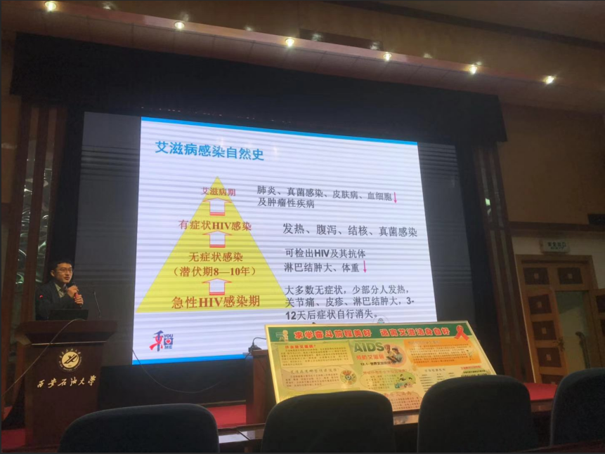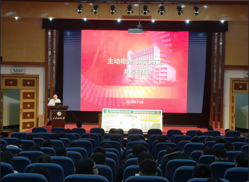 講座通過(guò)大量實(shí)際數(shù)據(jù)向同學(xué)們展現(xiàn)了全國(guó)大學(xué)生感染艾滋病人數(shù)上升的局勢(shì),強(qiáng)調(diào)了高校開(kāi)展艾滋病防治宣傳教育的重要性和必要性等,同時(shí)結(jié)合臨床病例與相關(guān)視頻,全面講解了艾滋病的感染自然史、基本癥狀、治療方法以及針對(duì)此疾病我國(guó)目前開(kāi)展的預(yù)防檢測(cè)方式及免費(fèi)治療政策,并指出糾正了蚊蟲(chóng)叮咬、日常生活正常接觸會(huì)被傳染艾滋病的誤區(qū),使學(xué)生們更深入地了解了什么是艾滋病,艾滋病的傳播渠道,艾滋病的廣泛性以及艾滋病的預(yù)防等重要的知識(shí),并引導(dǎo)同學(xué)們科學(xué)、理性的認(rèn)識(shí)和對(duì)待艾滋病及感染人群。