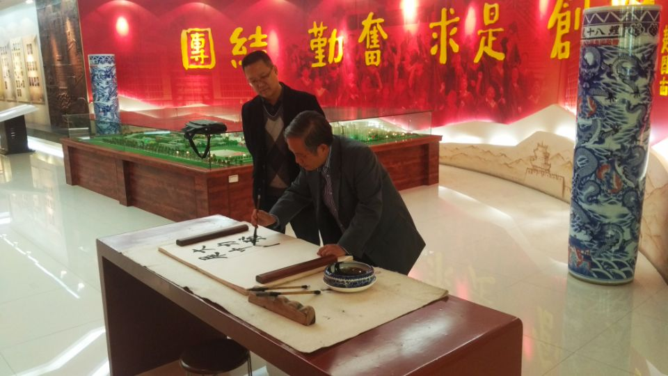 講座開(kāi)始前,學(xué)院黨委副書(shū)記劉小波陪同Jerry C.Tien教授參觀了學(xué)校鐵人館和校史館。參觀結(jié)束后,Jerry C.Tien教授為校史館題字。