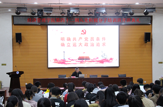11月8日晚,經(jīng)濟(jì)管理學(xué)院第四十二期入黨積極分子培訓(xùn)班開(kāi)班典禮在鄠邑校區(qū)經(jīng)管人文樓118多功能廳舉行。經(jīng)濟(jì)管理學(xué)院黨委書(shū)記閆大維出席,學(xué)院組織員、2018級(jí)輔導(dǎo)員、黨工辦學(xué)生干部、各年級(jí)入黨積極分子共230余人參加。
