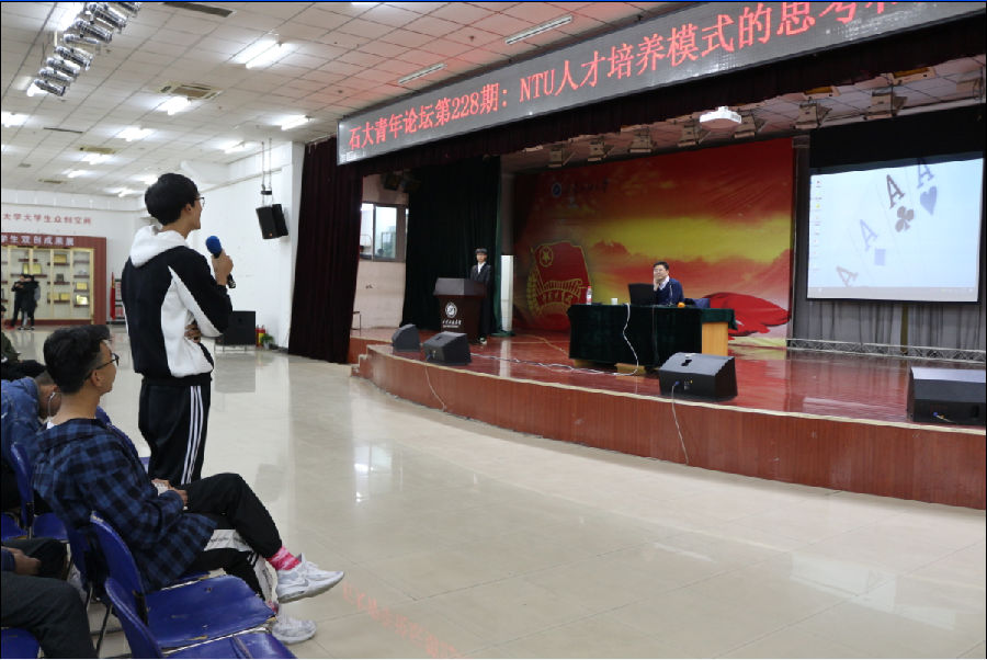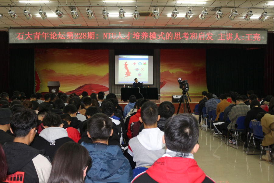 11月6日晚7點(diǎn),由校團(tuán)委主辦,電子工程學(xué)院承辦的第228期石大青年論壇:NTU人才培養(yǎng)模式的思考和啟發(fā)——兼談新英兩國(guó)訪游見聞,在騰輝大學(xué)生活動(dòng)中心順利舉辦。此次論壇主講人為西安石油大學(xué)黨政辦公室副主任、鄠邑校區(qū)管理辦公室副主任王亮老師。