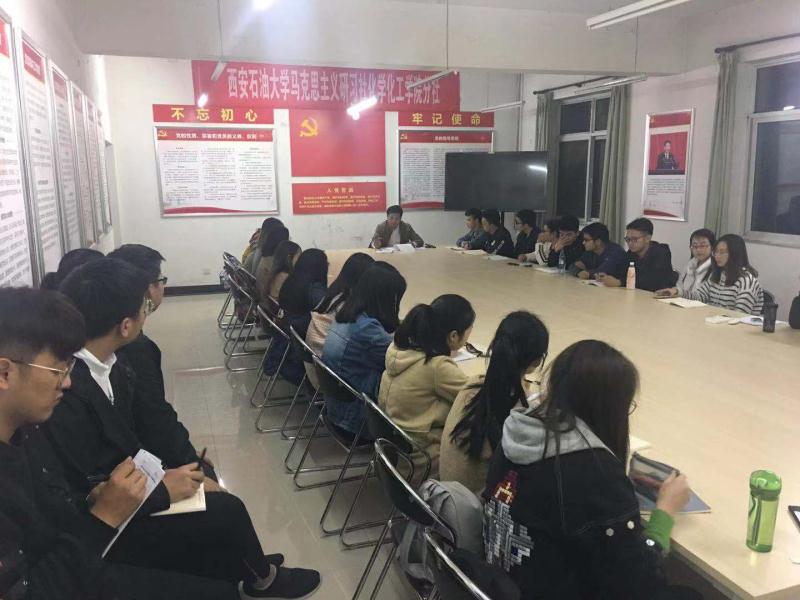 學(xué)習(xí)會(huì)上,與會(huì)人員在支部書記的帶領(lǐng)下,認(rèn)真學(xué)習(xí)了《中共西安石油大學(xué)委員會(huì)關(guān)于印發(fā)< 關(guān)于在全校深入開展“弘揚(yáng)愛國奮斗精神、建功立業(yè)新時(shí)代”活動(dòng)的實(shí)施方案>的通知》和《化學(xué)化工學(xué)院黨委關(guān)于深入開展弘揚(yáng)愛國奮斗精神、建功立業(yè)新時(shí)代活動(dòng)的實(shí)施方案》精神,通過文件學(xué)習(xí)研讀,各支部認(rèn)真制定了支部學(xué)習(xí)方案,黨員制定了個(gè)人學(xué)習(xí)計(jì)劃。