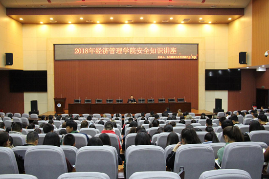 張旭所長根據(jù)大學生群體安全意識較弱,法律意識淡薄,以及經(jīng)濟管理學院女生人數(shù)多,自我保護能力較低的特點,通過真實的案例分析,就防盜防騙、禁毒、反恐、女大學生人身安全以及校園貸等方面展開教育。普法講座期間,同學們與張所長進行關(guān)于校園貸、非法傳銷方面的交流,詢問自己遇到的問題,張所長也進行了詳盡的回答。