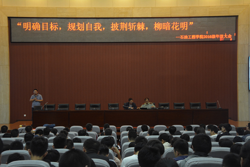 9月19日晚,石油工程學院2016級年級大會在弘石報告廳舉行。本次大會的主題為“明確目標,規(guī)劃自我,披荊斬棘,柳暗花明”。石油工程學院黨委副書記張建高、學生管理辦公室主任孫會珠、2016級輔導員老師嚴維博及2016級全體同學參與本次會議。