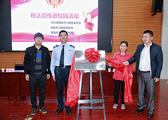 9月18日下午,經(jīng)濟(jì)管理學(xué)院書香校園系列活動(dòng)之稅收普法基地揭牌儀式在經(jīng)管人文樓118舉行。鄠邑區(qū)團(tuán)委副書記陳睿,區(qū)稅務(wù)局總經(jīng)濟(jì)師徐凱,區(qū)財(cái)政局、區(qū)稅務(wù)局青春夢(mèng)之隊(duì)成員代表以及經(jīng)濟(jì)管理學(xué)院黨委副書記趙海濤,校團(tuán)委校園文化部部長(zhǎng)姜國(guó)平,經(jīng)濟(jì)管理學(xué)院2016級(jí)會(huì)計(jì)系全體學(xué)生參加了本次活動(dòng)。