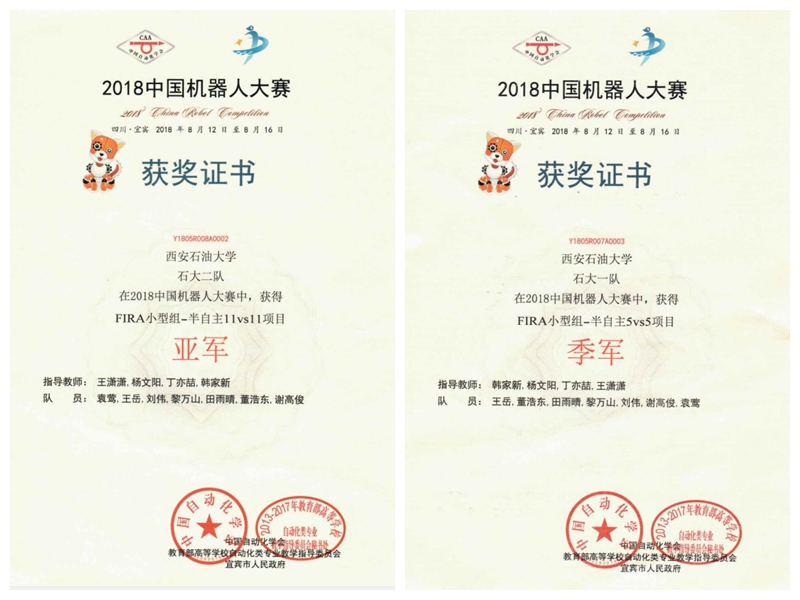 我校代表隊(duì)在FIRA小型組半自主5vs5項(xiàng)目賽中,經(jīng)過常規(guī)賽、加時賽、點(diǎn)球大戰(zhàn),成功小組出線。歷經(jīng)一天的緊張調(diào)試和兩天的激烈角逐,我校代表隊(duì)最終在FIRA小型組半自主11vs11項(xiàng)目和5vs5項(xiàng)目決賽中分別獲得亞軍和季軍。我校學(xué)子再次在國內(nèi)重要的賽場上發(fā)揮了高超的科學(xué)競技水平,展現(xiàn)了良好的精神風(fēng)貌。