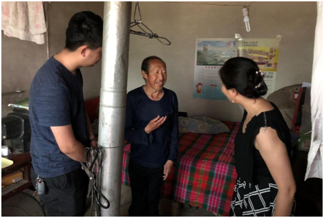 到達堅固村后,在駐村干部齊基、吳三柱兩位同志的帶領(lǐng)下,到對口扶貧戶魏彥坤家中探望。我們?yōu)槔先藥砹藪烀?、雞蛋、醬油等生活物品,并詳細詢問了老人生活情況,了解老人目前存在的困難,叮囑老人保重身體,力所能及的為其排憂解難。