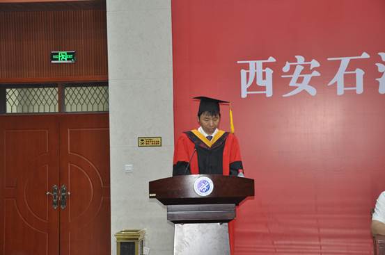 學(xué)位授予儀式在莊嚴(yán)的國歌聲中開幕。侯琦書記代表學(xué)院在儀式上發(fā)表了熱情洋溢的講話,他首先代表學(xué)院向圓滿完成學(xué)業(yè)并獲得學(xué)士學(xué)位的全體畢業(yè)生表示熱烈的祝賀!侯琦書記說,四年時光,學(xué)院見證了每一位同學(xué)的成長與收獲,同時,同學(xué)們也見證了學(xué)校獲批博士學(xué)位授予單位、鄠邑校區(qū)東大門的建成啟用、新操場的投入運(yùn)行等學(xué)校發(fā)展時刻。新時代中國對同學(xué)們而言既是挑戰(zhàn),也是施展才華的好機(jī)會。他對畢業(yè)生提出了四點(diǎn)希望和囑托:一是繼續(xù)弘揚(yáng)鐵人精神和石油精神,充分發(fā)揮自身優(yōu)勢,以青年人應(yīng)有的責(zé)任和擔(dān)當(dāng)讓青春綻放光彩。二是堅持對卓越的追求,以時不我待只爭朝夕的踏實(shí)精神實(shí)現(xiàn)人生目標(biāo)。三是激活正能量擁有好心態(tài),面對困難挫折時擁有好心態(tài)是轉(zhuǎn)變角色、適應(yīng)社會的關(guān)鍵。四是筑夢人生,精彩一生。要敢于有夢、善于筑夢、勤于追夢,實(shí)現(xiàn)自己的人生價值,為祖國、為社會添磚加瓦,為母校、為父母增光添彩。