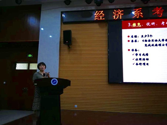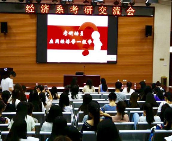 2018年6月21日下午2點,經(jīng)濟學(xué)系部分教師和國貿(mào)、金融專業(yè)本科生近300人在鄠邑校區(qū)經(jīng)管人文樓118報告廳召開了考研經(jīng)驗交流會。參加會議的人員有應(yīng)用經(jīng)濟學(xué)一級學(xué)科帶頭人吳文潔教授、唐娟莉副教授、姚小劍副教授、國貿(mào)、金融專業(yè)在校本科生,以及四位代表不同類型的考研經(jīng)驗交流者,他們分別是國貿(mào)專業(yè)考取校外211大學(xué)產(chǎn)業(yè)經(jīng)濟學(xué)專業(yè)研究生的寧楠同學(xué)、國貿(mào)專業(yè)保研本校產(chǎn)業(yè)經(jīng)濟學(xué)專業(yè)的劉雪夢同學(xué)、國貿(mào)專業(yè)考取本校會計碩士(MPacc)常貝貝同學(xué)、外??既”拘.a(chǎn)業(yè)經(jīng)濟學(xué)專業(yè)研究生,于今年考取211大學(xué)博士的楊光磊同學(xué)。