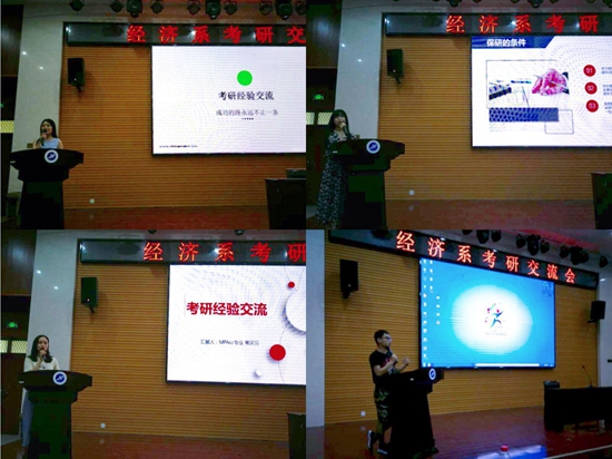 報告會開始時,吳文潔教授首先圍繞應(yīng)用經(jīng)濟學(xué)一級學(xué)科申報成功,從師資隊伍、科研實力、學(xué)科方向、研究生就業(yè)、研究生獎勵、考研調(diào)劑等幾個方面介紹了我校應(yīng)用經(jīng)濟學(xué)一級學(xué)科建設(shè)情況,并希望同學(xué)們能積極報考我校應(yīng)用經(jīng)濟學(xué)一級學(xué)科研究生。寧楠同學(xué)結(jié)合自身的考研復(fù)習(xí)經(jīng)歷介紹了如何選取學(xué)校、專業(yè),如何有效復(fù)習(xí),如何堅持,以及考研過程中的注意事項等方面進行了介紹。楊光磊同學(xué)介紹了如何正確認識考研,如何在人生成長過程中規(guī)劃考研等內(nèi)容。劉雪夢同學(xué)介紹了我校保研成功要具備的條件,以及如何準(zhǔn)備才能被保研。常貝貝同學(xué)介紹了為什么報考MPacc,報考本校MPacc的優(yōu)勢,以及如何跨專業(yè)復(fù)習(xí)MPacc。最后,同學(xué)們還就感興趣的考研問題進行了交流。