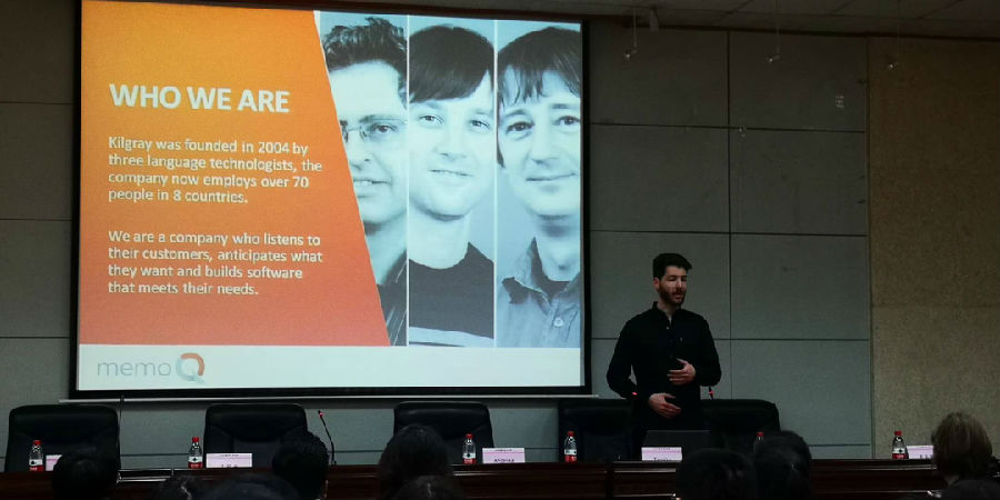外國(guó)語學(xué)院院長(zhǎng)于艷英致開幕詞,對(duì)各位嘉賓的到來表示熱烈的歡迎。Kilgray公司聯(lián)合創(chuàng)始人,memoQ創(chuàng)意總監(jiān)Gabor Ugray和渠道總監(jiān)Tomas Ritter分別對(duì)memoQ的開發(fā)理念和服務(wù)器技術(shù)進(jìn)行了介紹,享譽(yù)全球的翻譯軟件培訓(xùn)師Angelika Zerfass就翻譯項(xiàng)目創(chuàng)建、術(shù)語管理和質(zhì)量控制等作了十分詳實(shí)的報(bào)告。上海一者信息科技劉寧赫經(jīng)理對(duì)基于memoQ, Trados 的Tmxmall語料對(duì)齊技術(shù)、在線翻譯、語料庫(kù)管理等進(jìn)行了圖文并茂的釋解,并耐心地對(duì)與會(huì)者提出的問題進(jìn)行了深入淺出的解答。