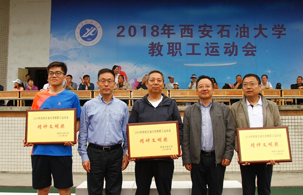 地球科學與工程學院教職工代表隊在本屆運動會中共參加集體項目5項、個人項目26項。學院教職工奮勇拼搏,先后在乒乓球擲準、20人集體挽臂跑、30米迎面接力三項集體項目和男子甲組3000m、男子甲組1500m、男子跳遠三項個人項目中取得較好成績,獲得團體總分第六名,并榮獲“2018年西安石油大學教職工運動會精神文明獎”。