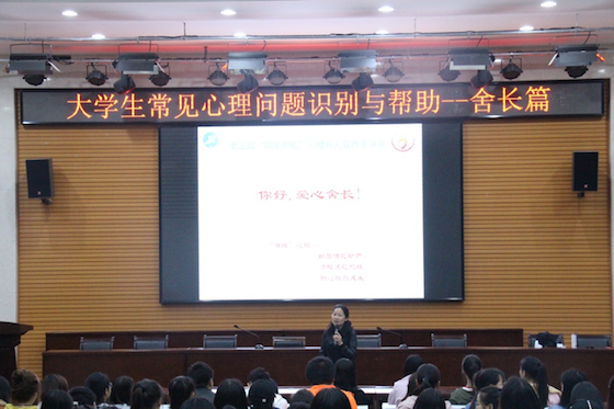 為落實我校第三屆“陽光護(hù)航”心理育人宣傳季活動計劃,提升經(jīng)濟管理學(xué)院“陽光護(hù)航”心理育人月系列活動水平,2018年4月12日晚,經(jīng)濟管理學(xué)院邀請我校學(xué)生心理成長指導(dǎo)中心主任肖瓊副教授在經(jīng)管人文樓118室舉辦《大學(xué)生心理問題識別與幫助——舍長篇》專題講座。經(jīng)管院各年級輔導(dǎo)員和2015、2016級宿舍長300余人參加此次活動。